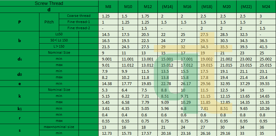 - Các cấp bền thường sử dụng: 8.8, 10.9, 12.9
