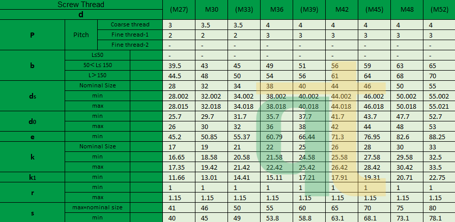 TIÊU CHUẨN DIN 609:1995 – HEXAGON FIT BOLTS